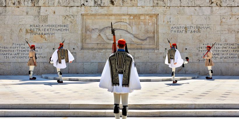 12)Changing of the Guard (Parliament Building of Athens): One can also find some time to end the 48 hours in Athens by watching the changing of the guard in front of the Parliament building on Syntagma Square. The guards dress in white kilts, red caps and clogs with pompons. It is really fascinating as ceremonial steps are carried out in slow motion.