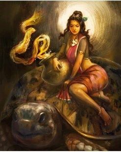 She stepped in. All eyes fixed at her. There's a perpetual charm in the gentle sway of her waist, the bashful blink of her eyes and the youthful smile of her lips. Yet there was something more overpowering in her except her flawless face or curvaceous body. She carried the amrita pot and started serving the devas.