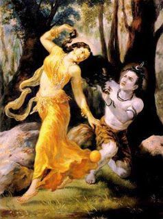 Mohini once gain sneaks into Hindu mythology to kill Bhasmasura (one who can turn anybody to ash with a touch ). She tempts Bhasmasura to dance with her. Bhasmasura taps his own head as a dance posture taught by Mohini and turns into ashes.